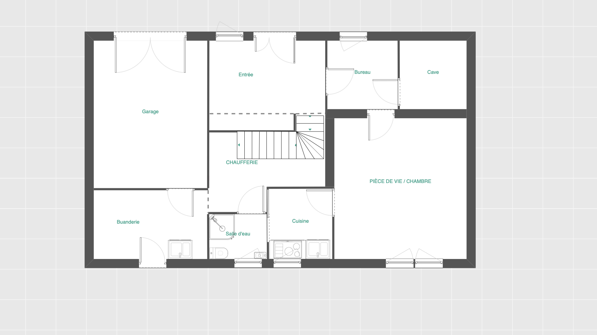 Au rez-de-chaussée, vous trouverez une entrée avec placard ainsi qu’un studio aménagé indépendant, comprenant une cuisine, une pièce de vie de 19 m² (séjour/chambre) et une salle d’eau avec WC.
