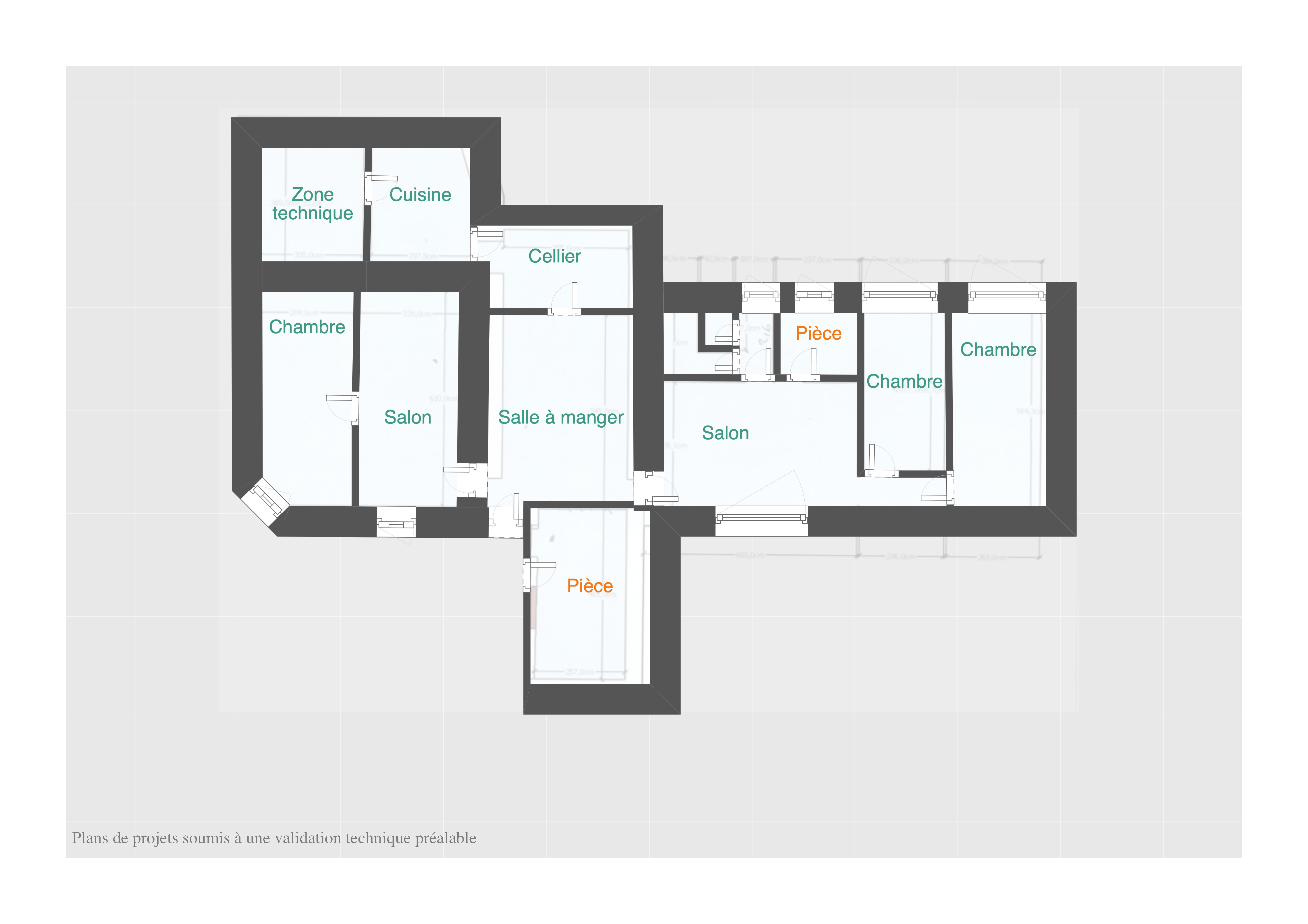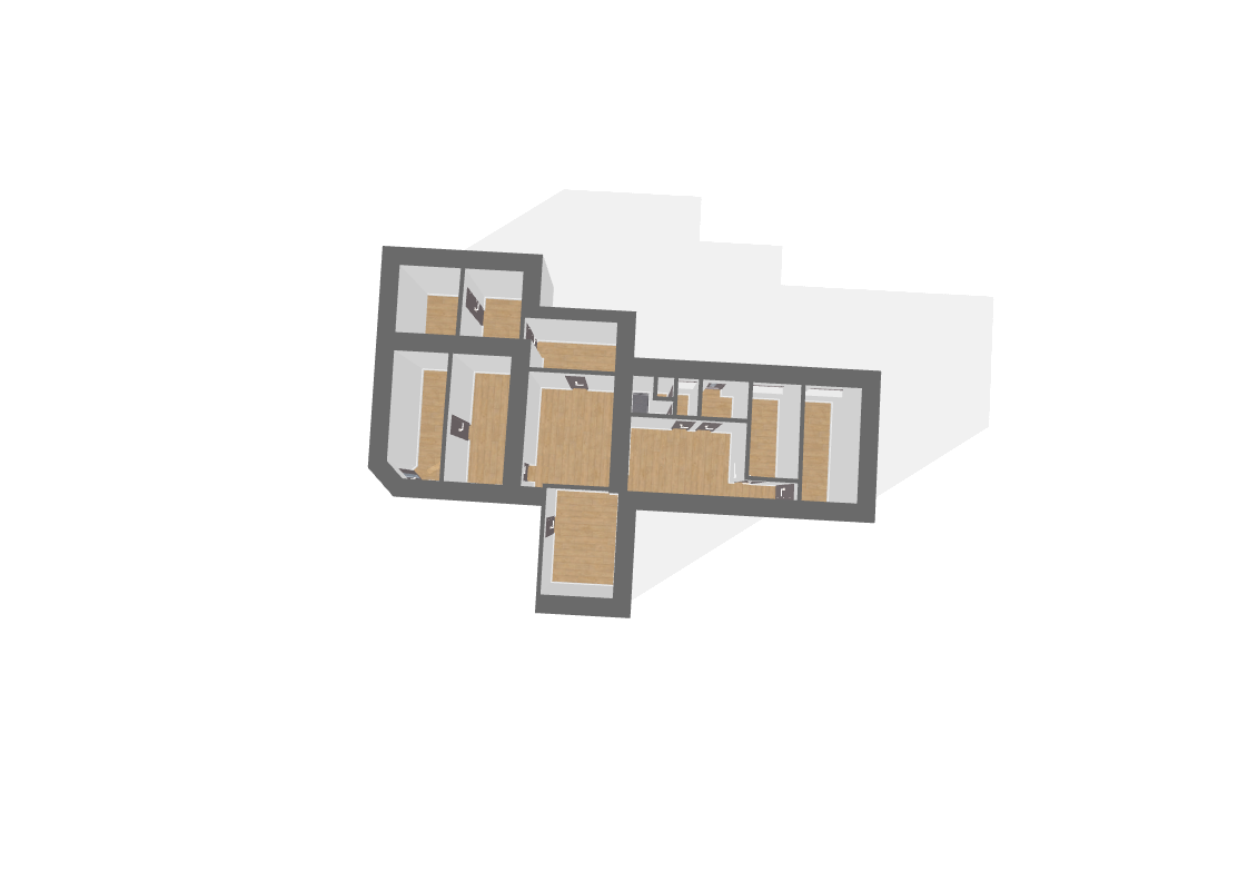 L’habitation se compose d’une salle à manger lumineuse de 19 m², de deux salons spacieux de 19 m² et 21 m², ainsi que de trois chambres confortables aux surfaces comprises entre 12 et 18 m². Elle dispose également d’une cuisine, d’une salle d’eau et de WC indépendants.